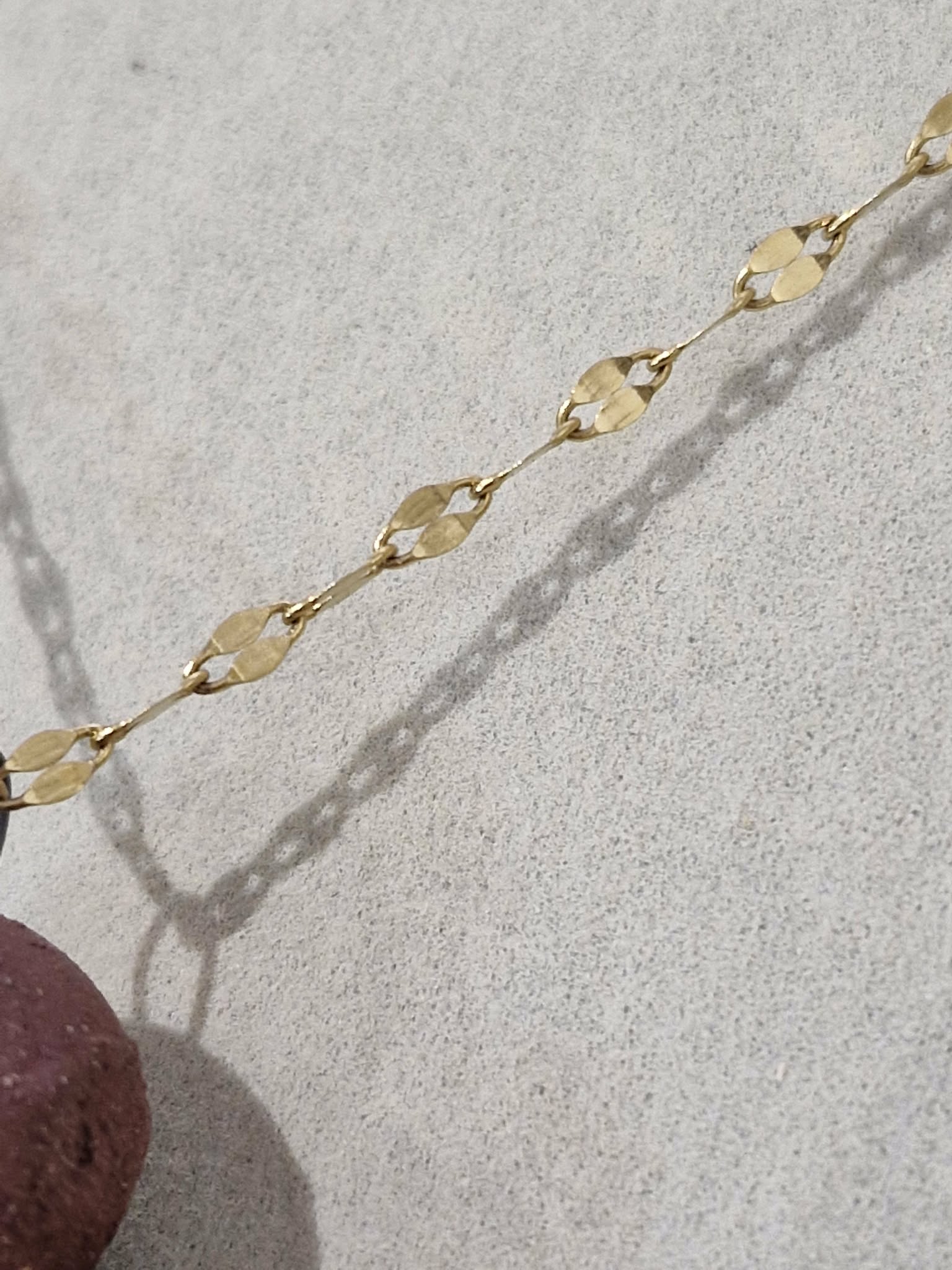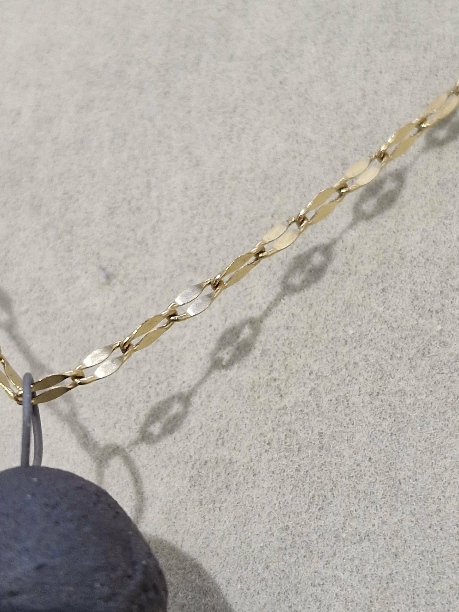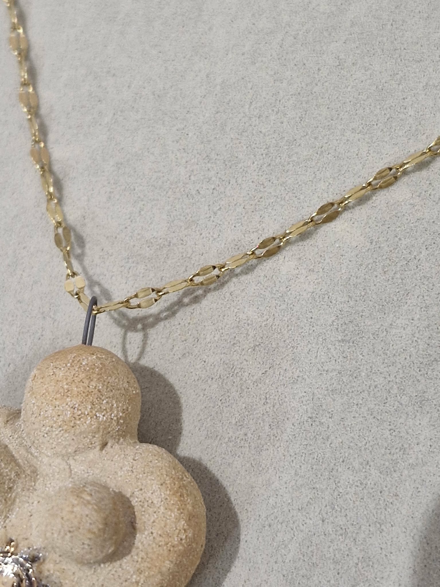 Les chaînes en acier inoxydable 304L doré (Perles&Co) complètent l’ensemble avec élégance et solidité.