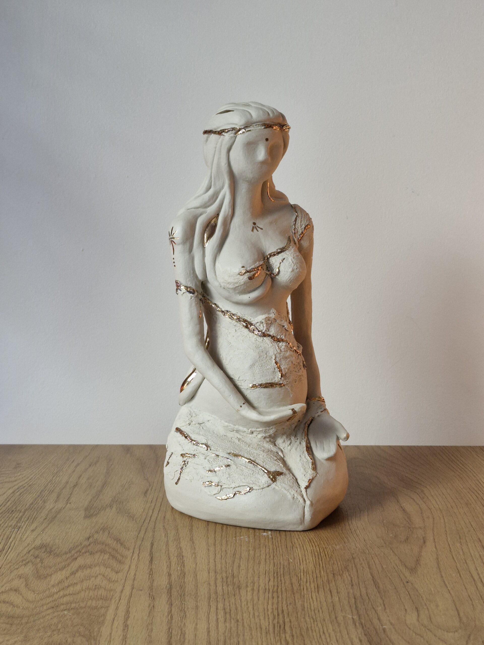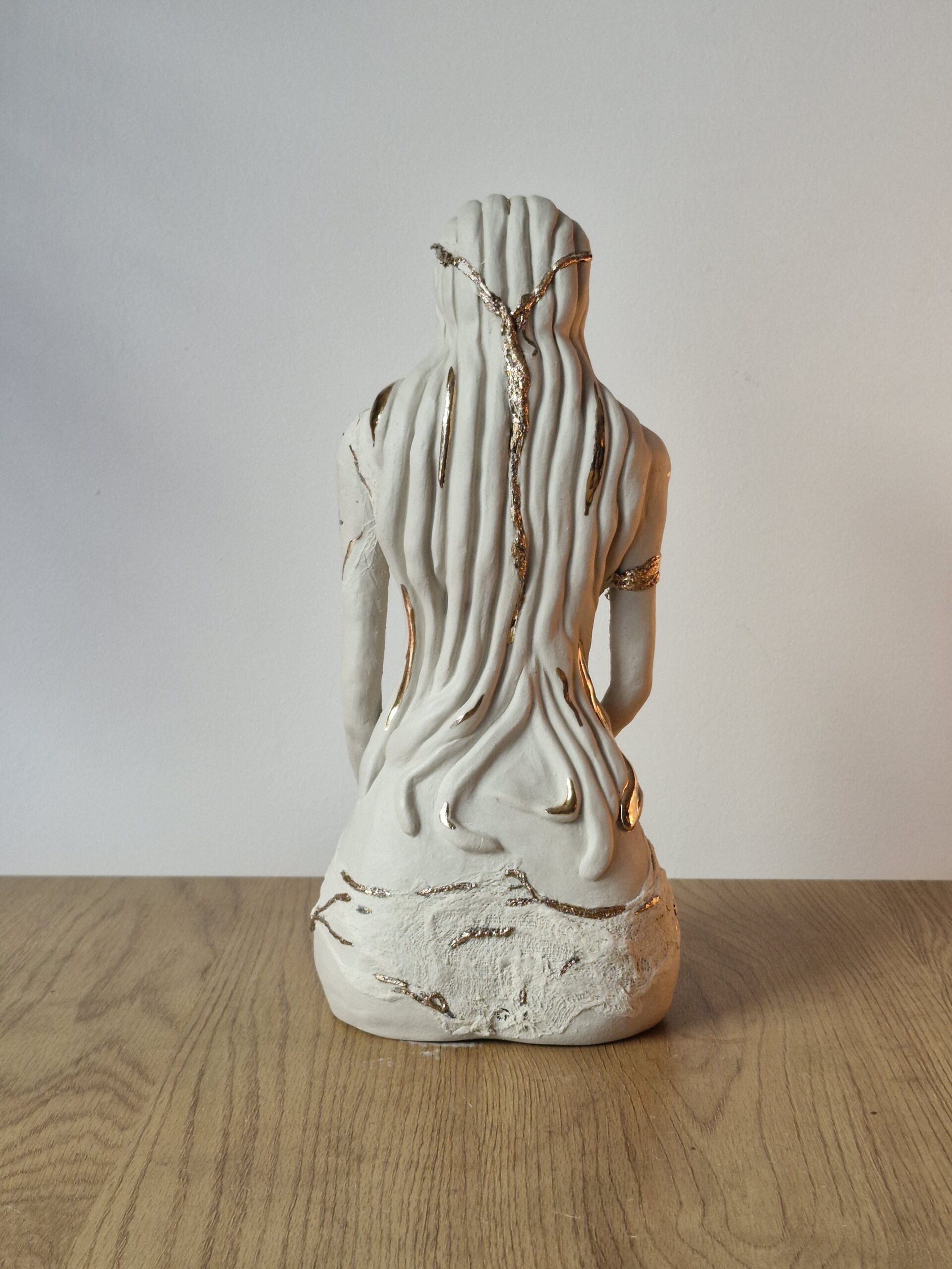 Sculpture  femme en grès blanc, rehaussée à l’or fin (8 %).